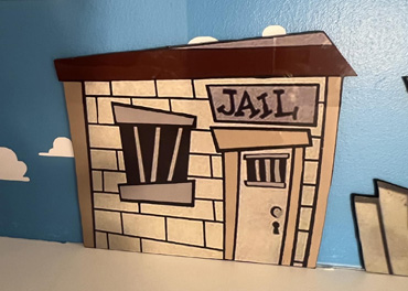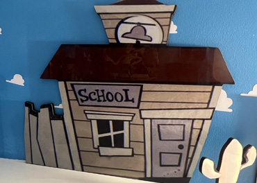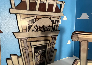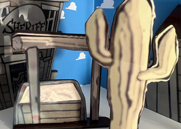 Town pieces and Andy's Window come with double-sided tape for attaching to walls. The hitching post and large and small cactus have stands. Add-on Item: Order a sheet of vinyl clouds for your blue wall for that extra touch.
