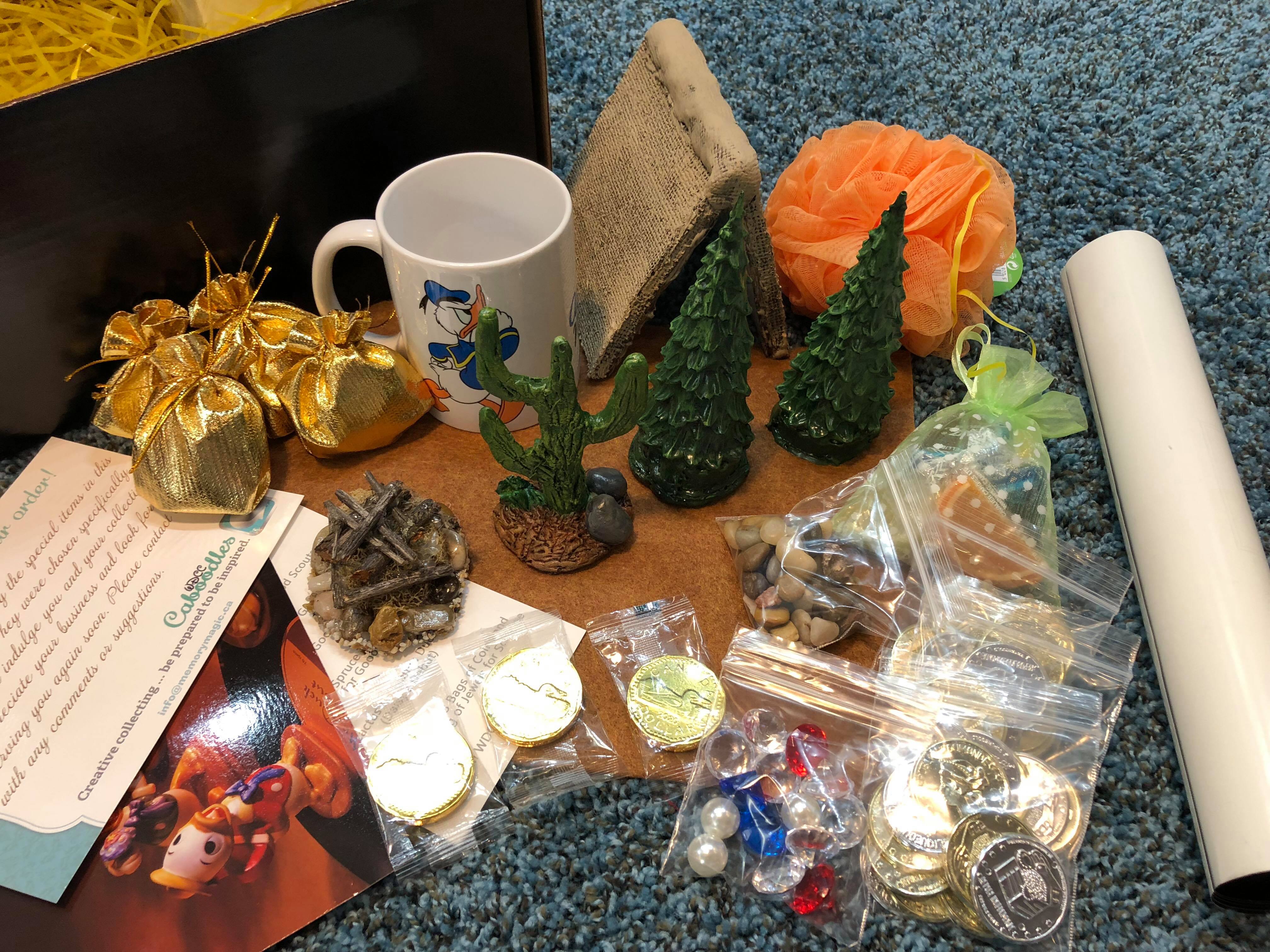 Display Thoughts: This Caboodle box has items for 3 different Duck scenes - included you will find a wonderful camping scene for "Good Scouts", a little Cactus for Daisy's Debut - Donna Duck, and some gold, silver and jewels to help set the scene with the wealthy Scrooge McDuck! Please note all of the items are hand crafted, so each will be a little bit different.
