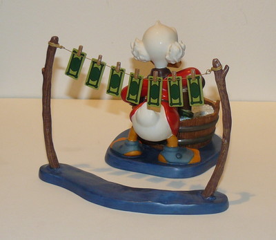 Recreating the celebrated cover artwork of some of Disney's best-loved comics, this sculpture from Walt Disney Classics Collection features Uncle Scrooge giving his bills a good scrubbing in his own unique version of laundry day as drawn by Carl Barks in Uncle Scrooge Comics #6 from June 1954.