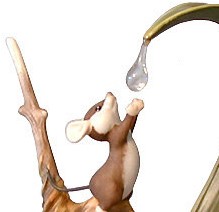 The dew drop hangs suspended above the field mouse's paws.