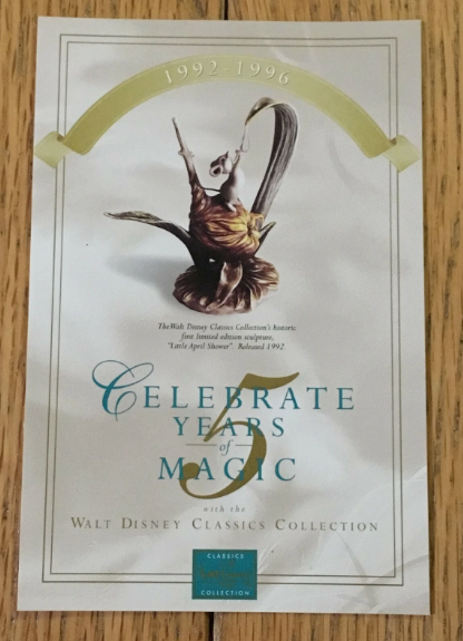 Postcards were mailed to collectors by the Authorized Dealers to announce their participation and/or included in either Sketches Magazine or Newsflash mailings by the Walt Disney Collectors Society.