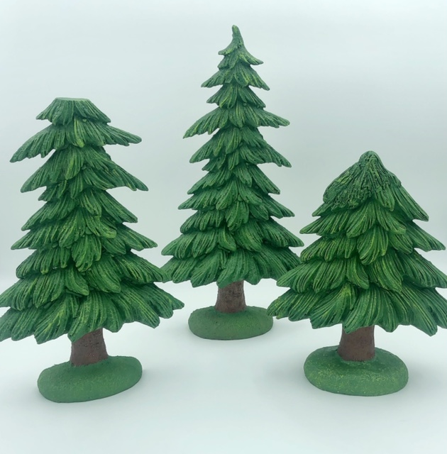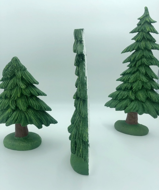 Display Thoughts: These beautiful solid resin trees were created to be tall enough for the Peter Pan - Fireside Celebration set but will also work great in many of the other ones. Created so they are flat to take up less room in your cabinet. Order the size you need depending on your cabinet height.