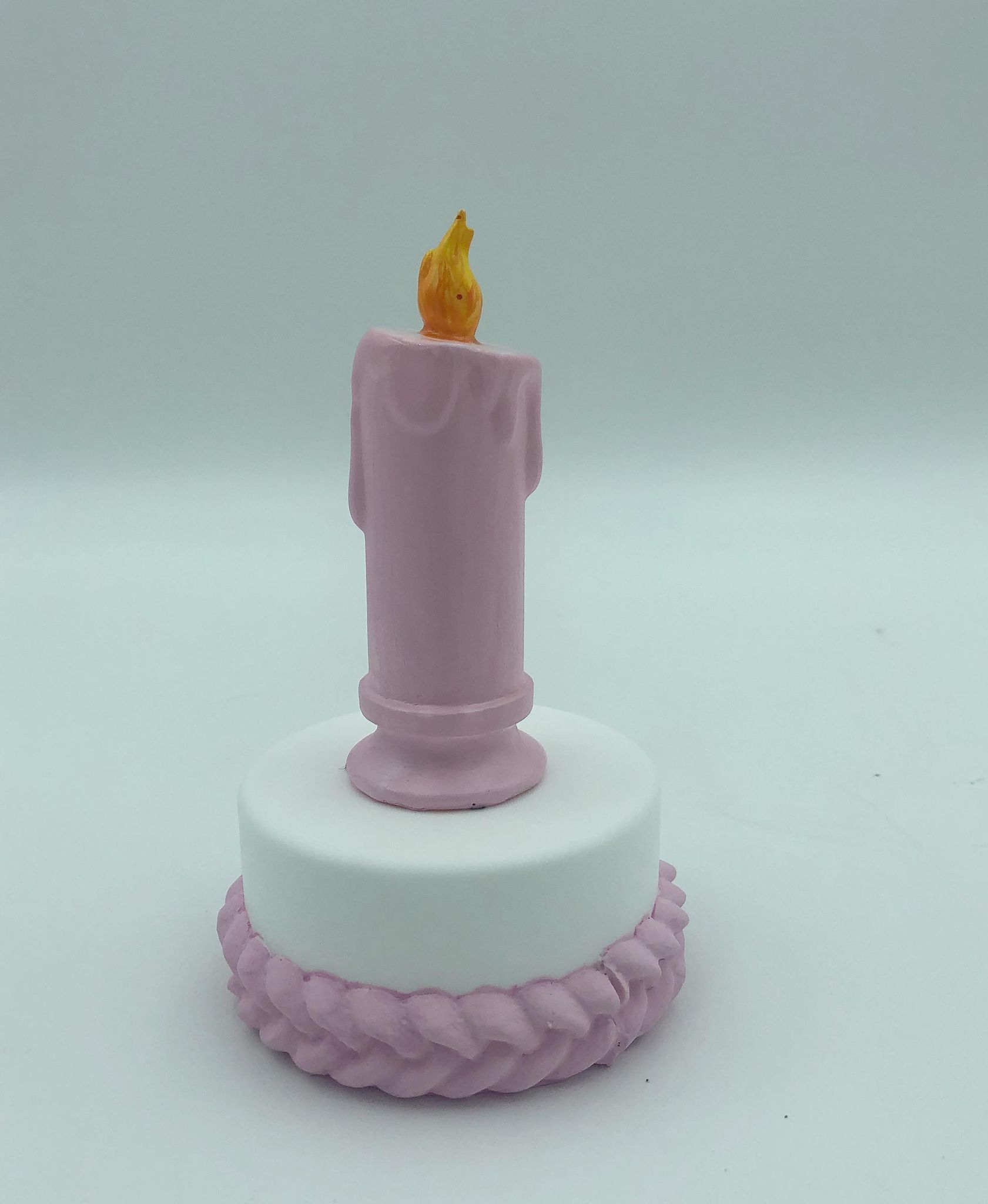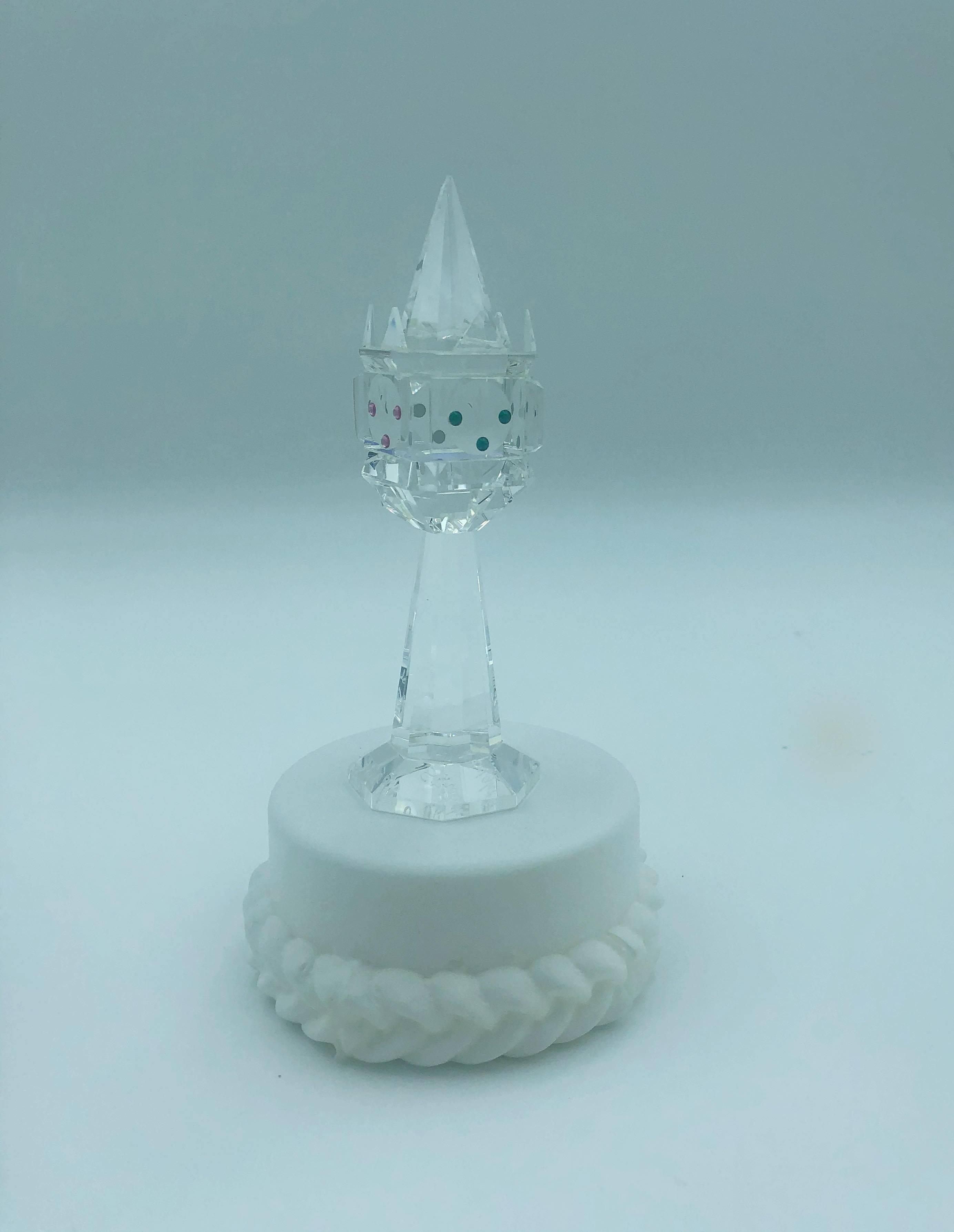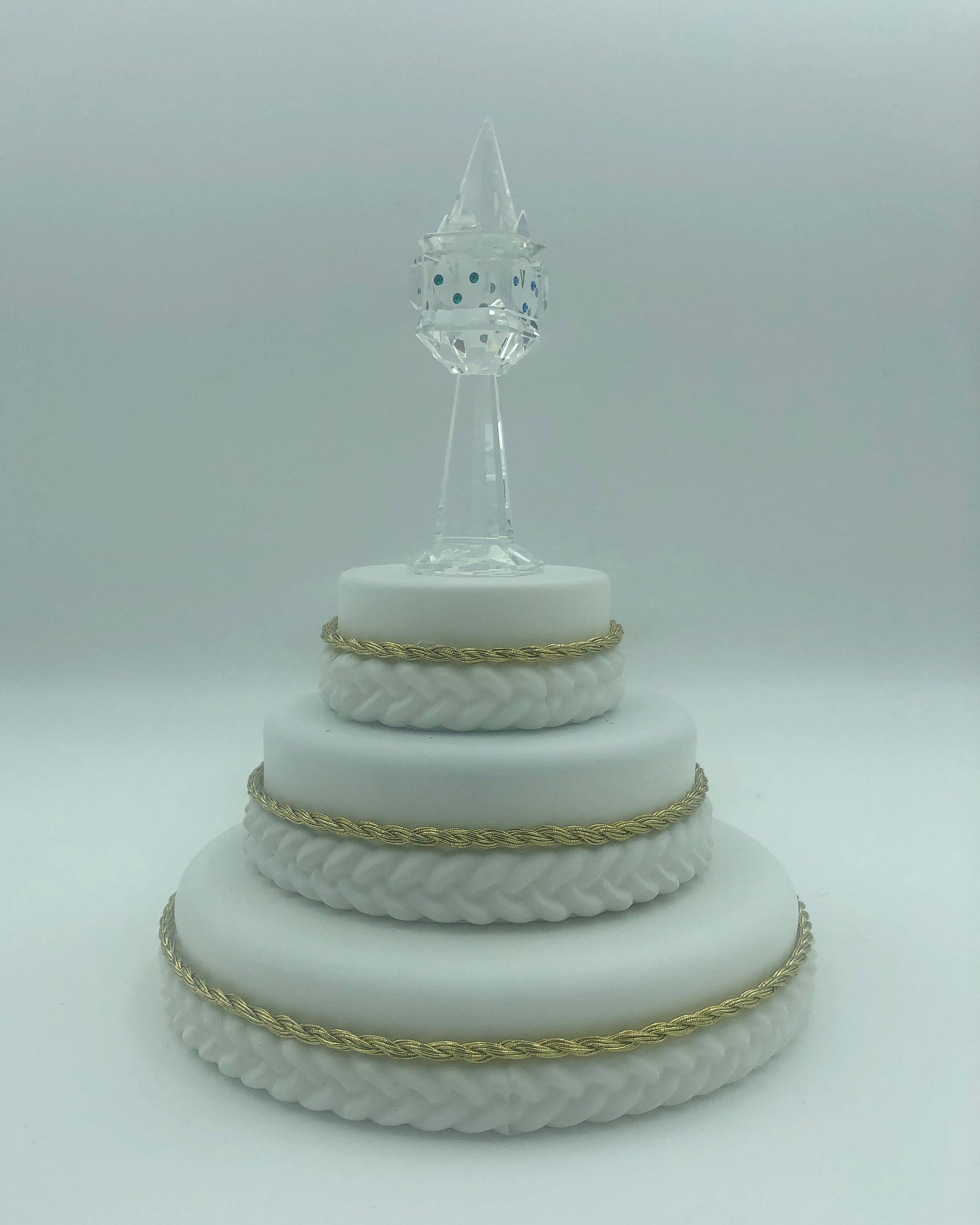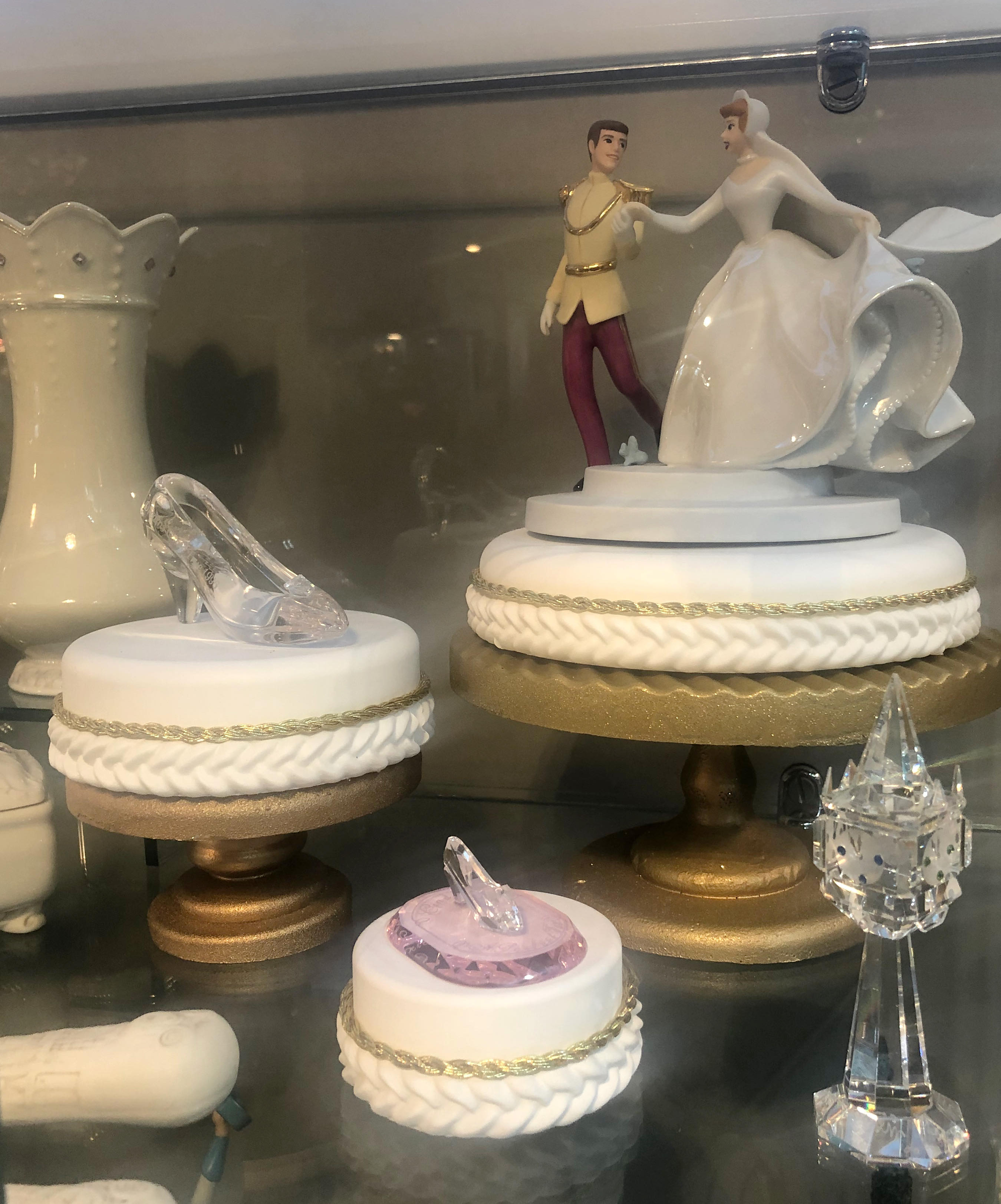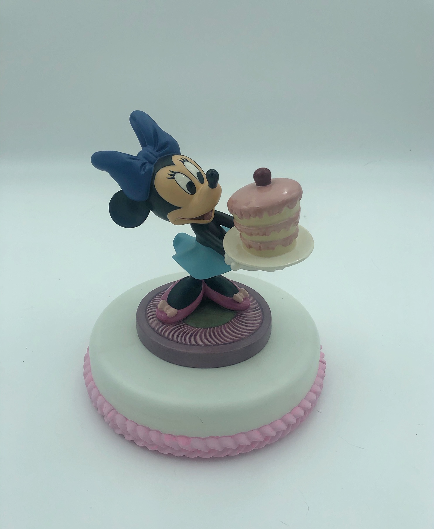 Display Thoughts: This beautiful resin cake and stand looks wonderful with the WDCC Cinderella cake toppers. The small cake is a great place to display your WDCC crystal. The birthday cake fits perfectly with Mickey and Minnie Mouse and can be ordered in with white or pink frosting color.