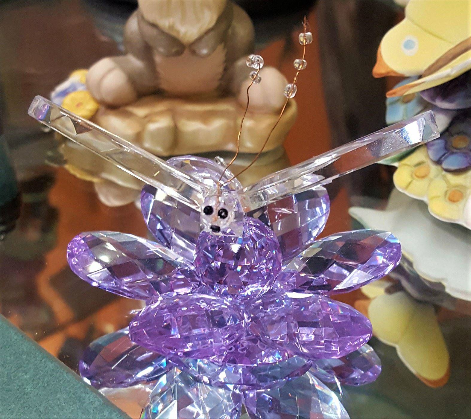 Plussing: Purple crystal flower with a clear crystal butterfly.