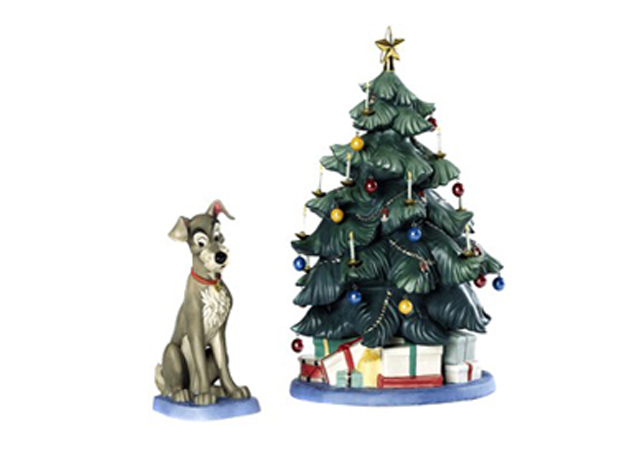The movie Lady and the Tramp begins and ends with Christmas. These joyful additions to the Walt Disney Classics Collection perfectly captures the warmhearted joy of the climatic holiday scene. The Lady and the Tramp Christmas Series made its debut in 2001. Each year, a 2-piece set was added and the set was finished in 2004. Each release was limited to that Production Year and all were sculpted by Dusty Horner.