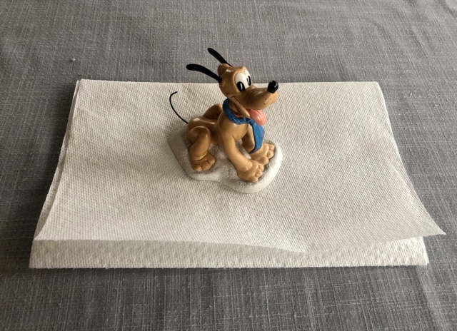 1. First, remove any dust with a dry cloth or duster. Microfibre material is the best as the negative charge helps pull away dust from the surface instead of moving it around on the figurine.