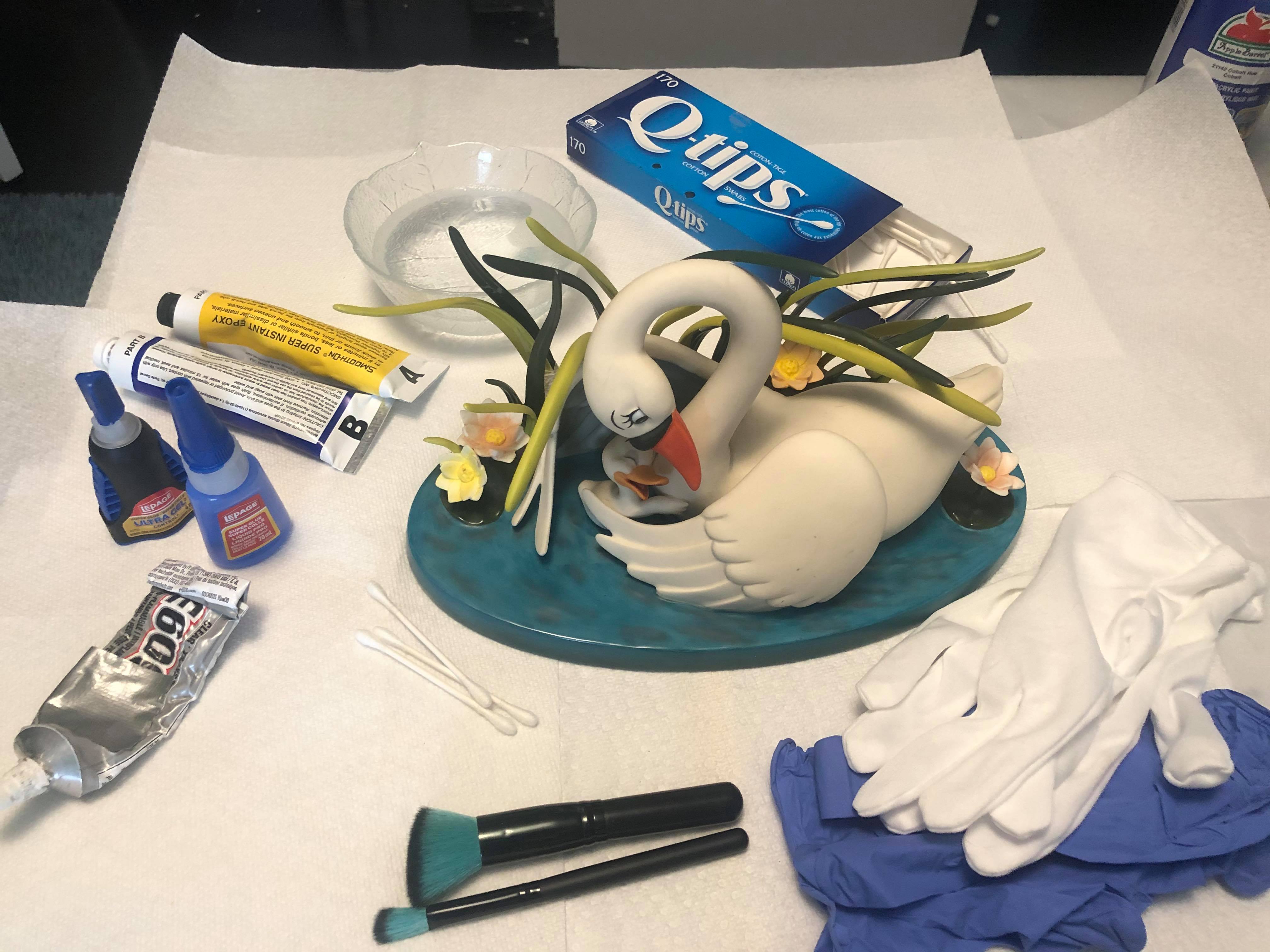 Once again, for someone who has no experience with sculpture repair, I wouldn't suggest doing it yourself; but if there is no other choice, I do recommend trying rather than just throwing it out. Even if your results are not perfect, many times you can position the sculpture in your cabinet so people won't even notice that something is wrong.
