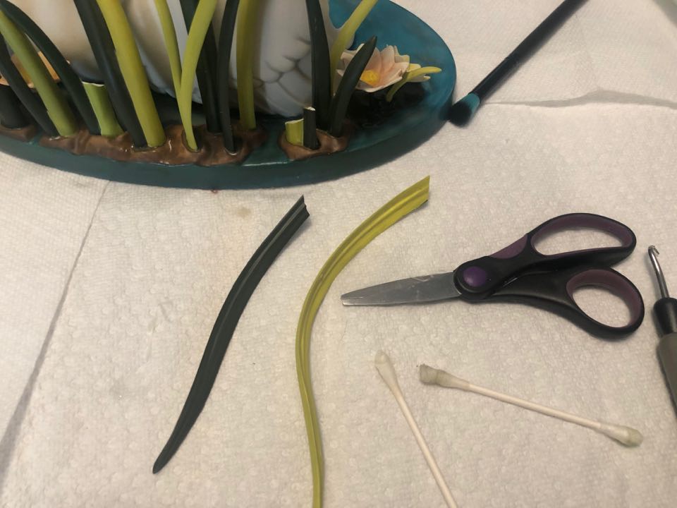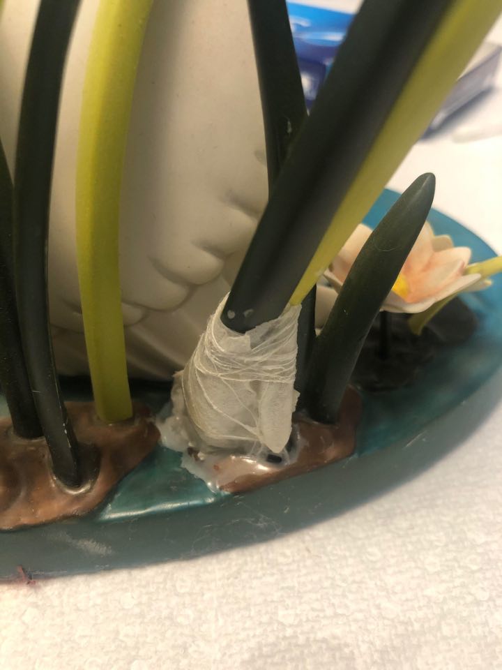 5. If you have large chips, or missing porcelain in your sculpture you can make a paste from glue and talc or baking powder to help fill in the holes. This can be then gently sanded before you paint it.