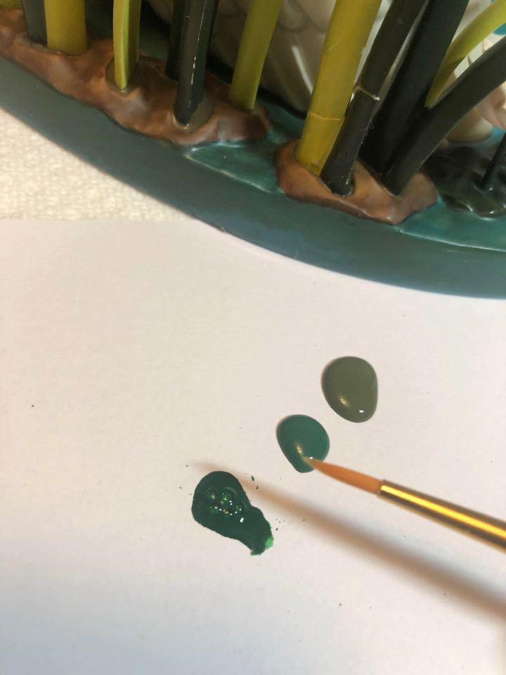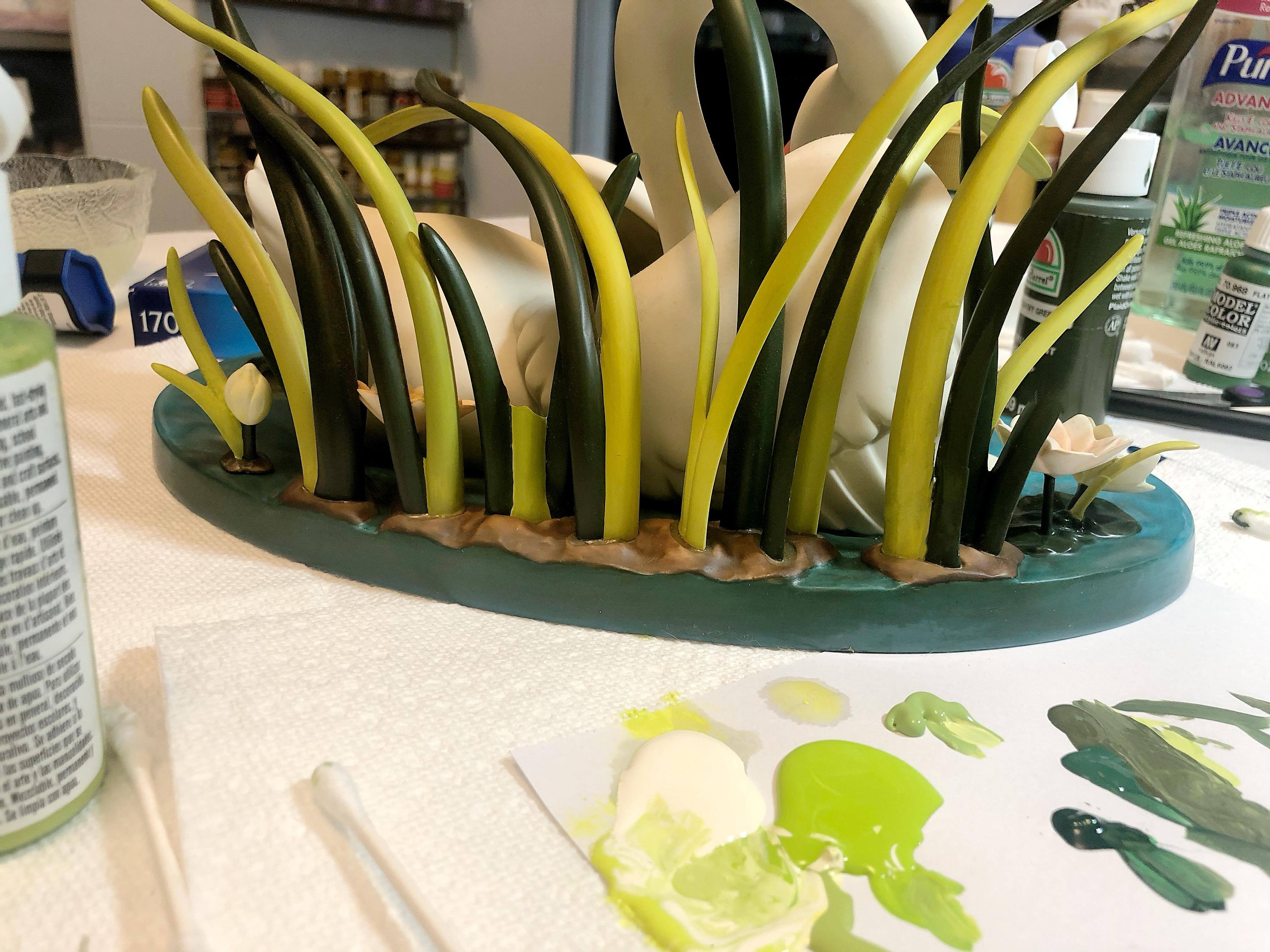 6. Gather many different shades of the color of paint you need as well as black and white. Mix them together until you find the perfect shade and dab it on to your sculpture. DO NOT use a felt pen as it can bleed into the porcelain and make a huge irreversible mess. Acrylic paint costs just a couple of dollars per bottle and is well worth the investment!