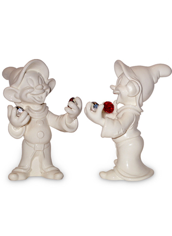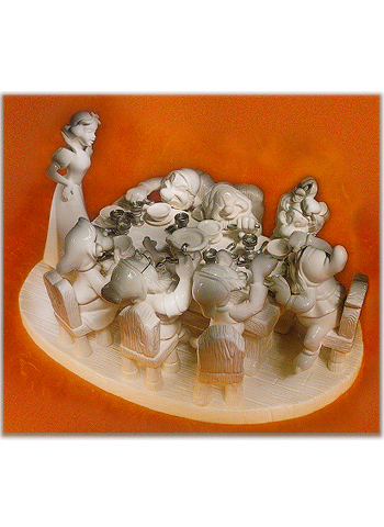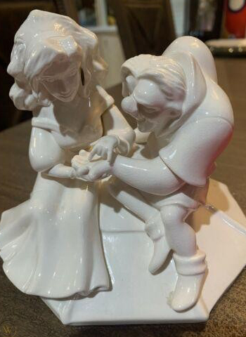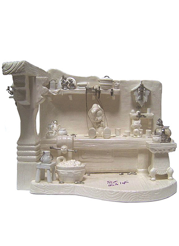 The final clay sculpt is cut into pieces and a plaster mold of each piece is made. The more complex and delicate the sculpture, the more pieces are needed. Some WDCC scuptures used up to 40 individual pieces! Liquid clay is poured into the molds and partially air dried into greenware pieces. These pieces are then reassembled. The greenware is sprayed with a translucent glaze and fired in a brick kiln creating whiteware. Some of these unpainted pieces can still be found and added to your collection as beautiful accent pieces. Thank you so much to the private collectors who shared these photos with us.